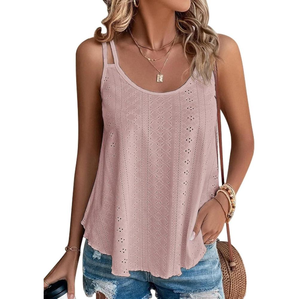 imageATHMILE Womens Tank Tops Sleeveless Summer Top Spaghetti Strap Spring Shirt Loose Fit Beach Vacation 2025 CasualDark Pink