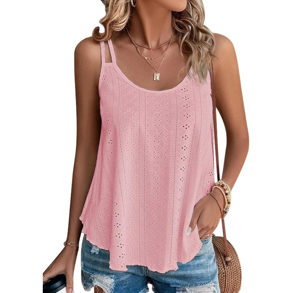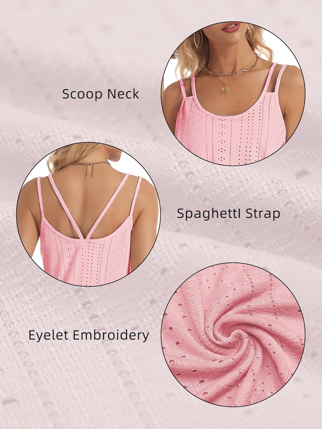imageATHMILE Womens Tank Tops Sleeveless Summer Top Spaghetti Strap Spring Shirt Loose Fit Beach Vacation 2025 CasualPink