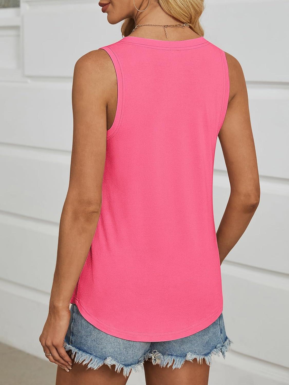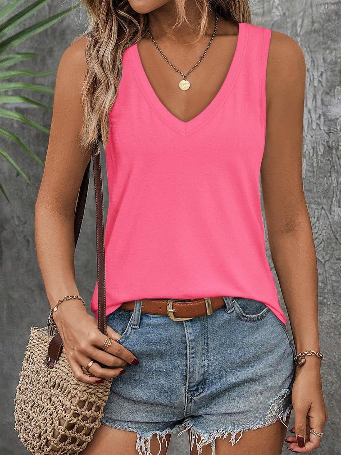 imageATHMILE Womens Tank Tops Summer Deep V Neck Loose Fit Flowy Sleeveless Shirt 2025Neon Hot Pink