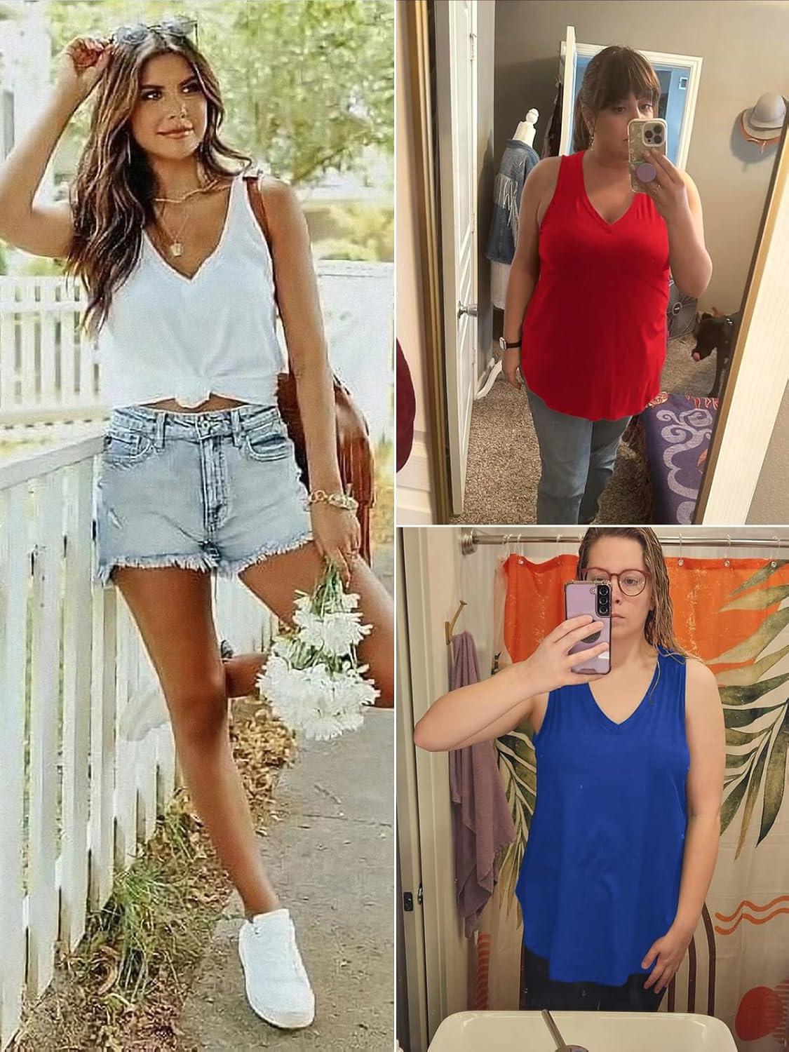 imageATHMILE Womens Tank Tops Summer Deep V Neck Loose Fit Flowy Sleeveless Shirt 2025Red