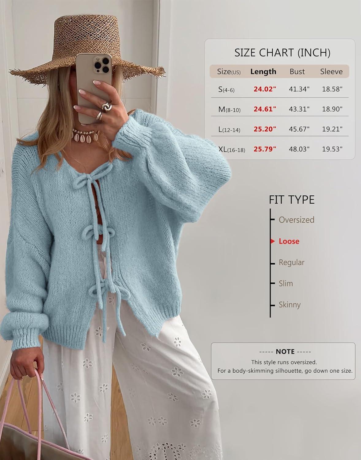 ATHMILE Women's Tie Front Bow Cardigan Sweaters Chunky Knit Long Puff Sleeve Trendy Fall Winter Jacket Coats 2025(Sky Blue)
