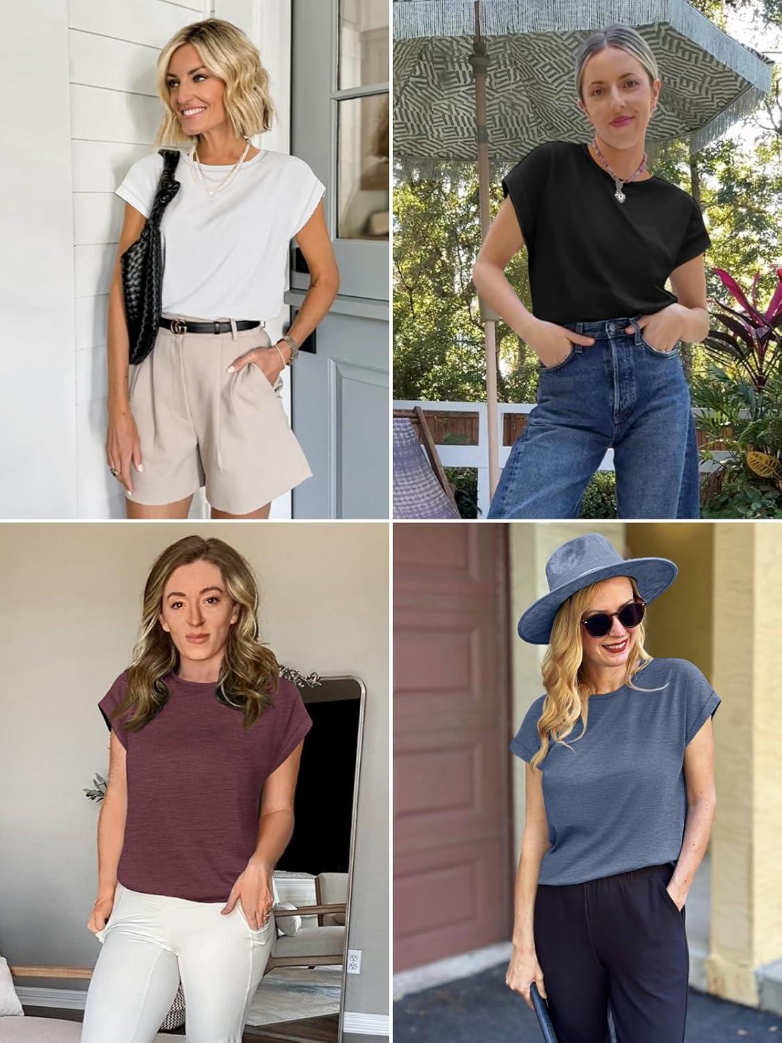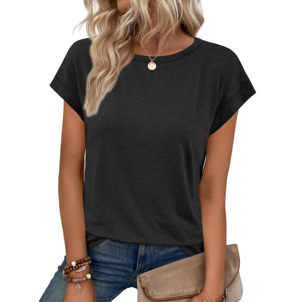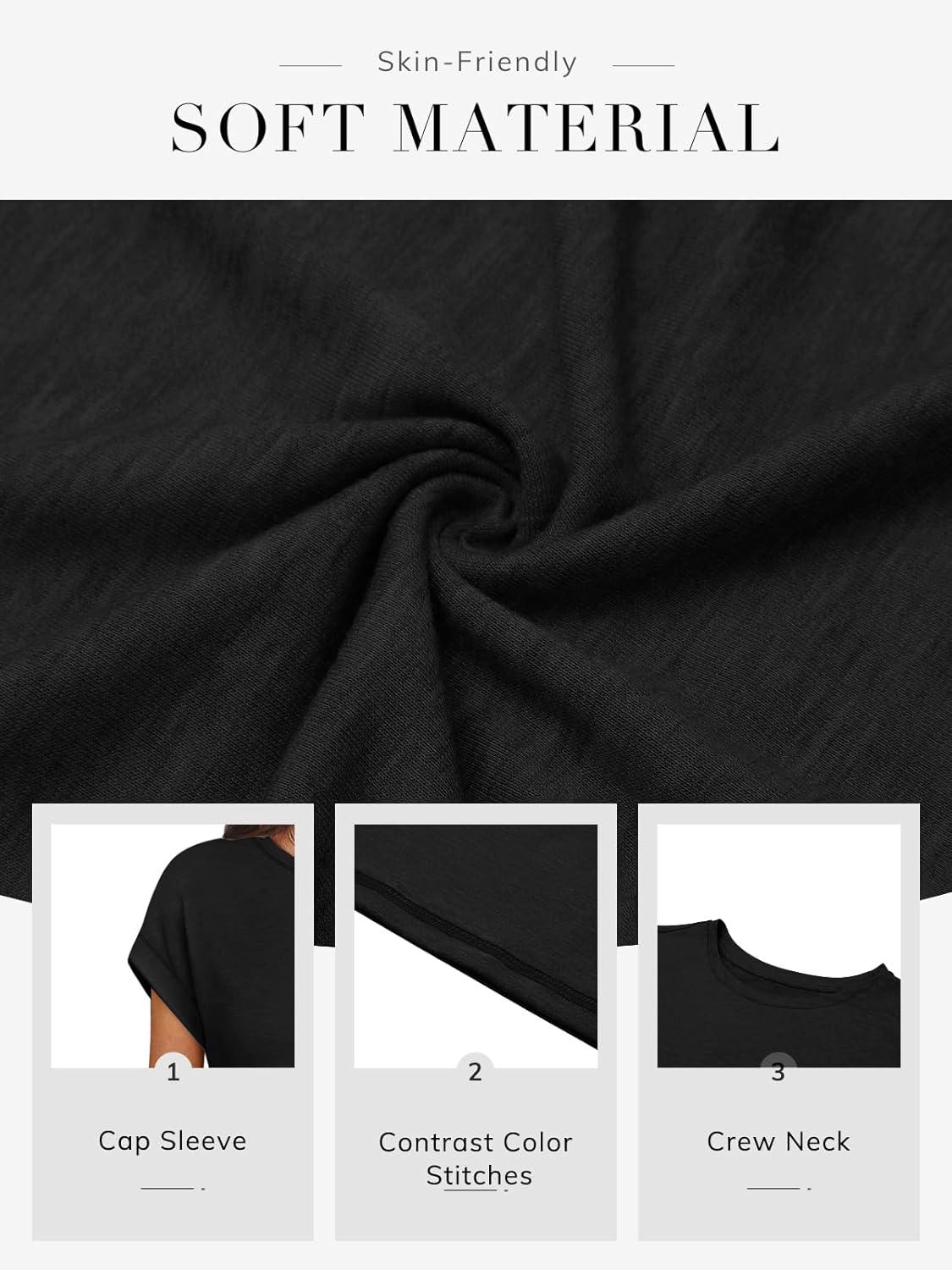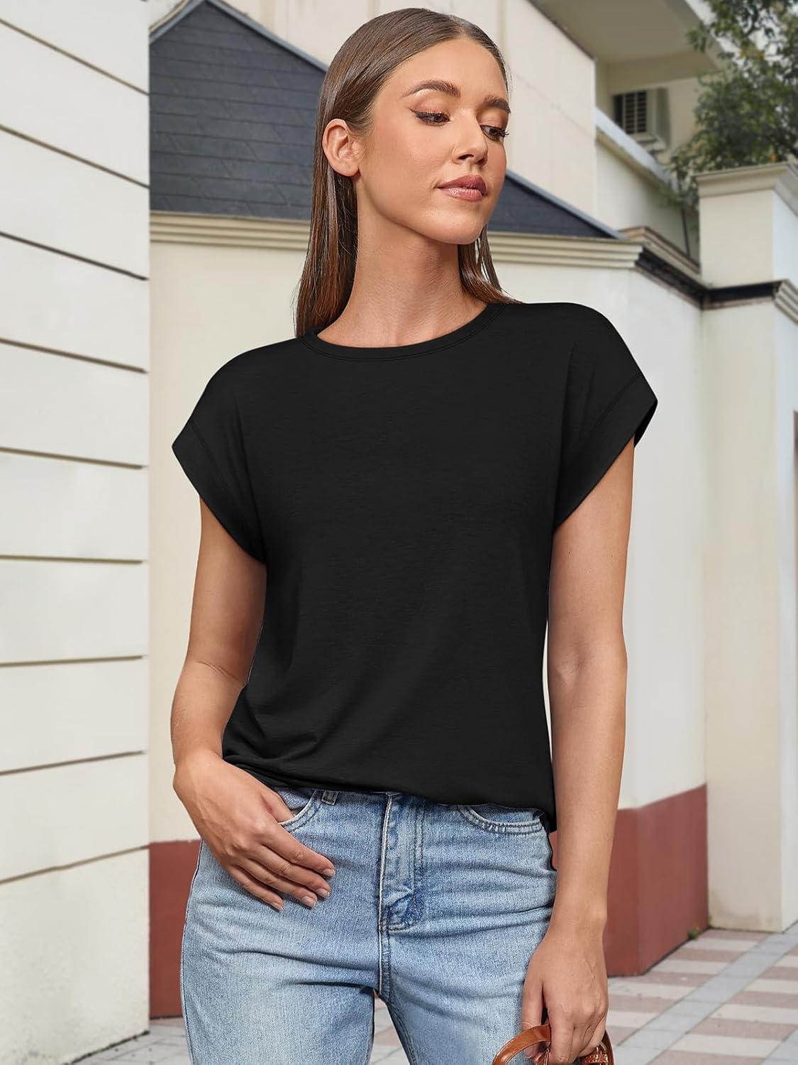 ATHMILE Womens Tops Basic T Shirts Summer Business Dressy Casual Cap Sleeve Tee Cute Clothes Trendy Fashion Outfits(Black)