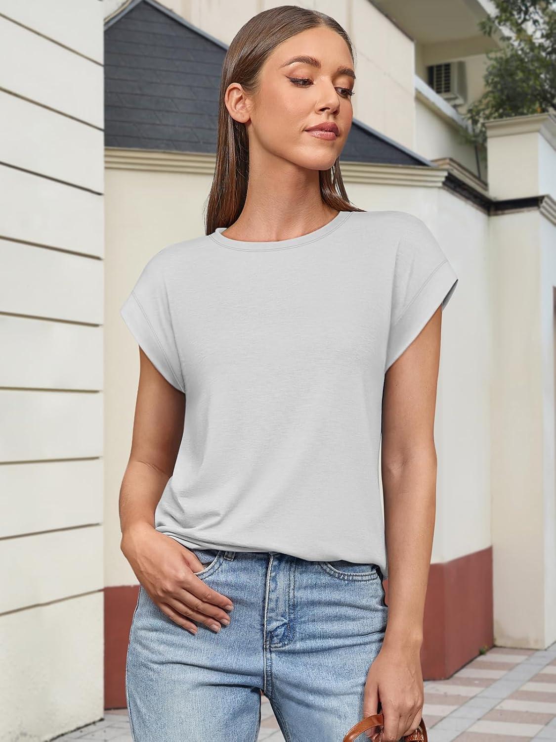 Score big savings on ATHMILE Womens Tops Basic T Shirts Summer Business Dressy Casual Cap Sleeve Tee Cute Clothes Trendy Fashion Outfits(White) during our back-to-school sale. Limited quantities available.