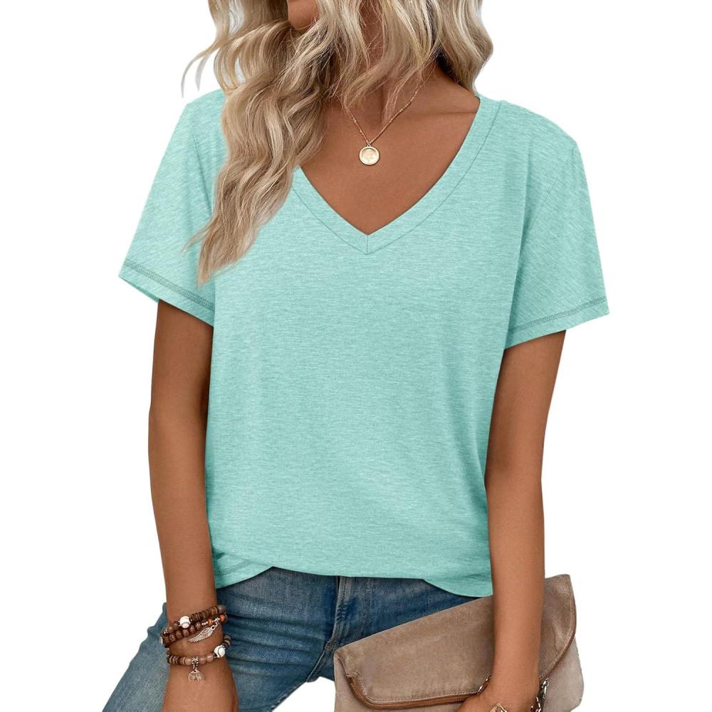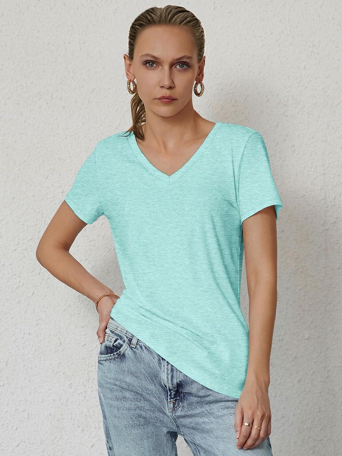 ATHMILE Womens Tops Shirts for Women Short Sleeve V Neck Tee Summer Fashion Trendy Soft Casual Spring Clothes Outfits Beach(Aqua)