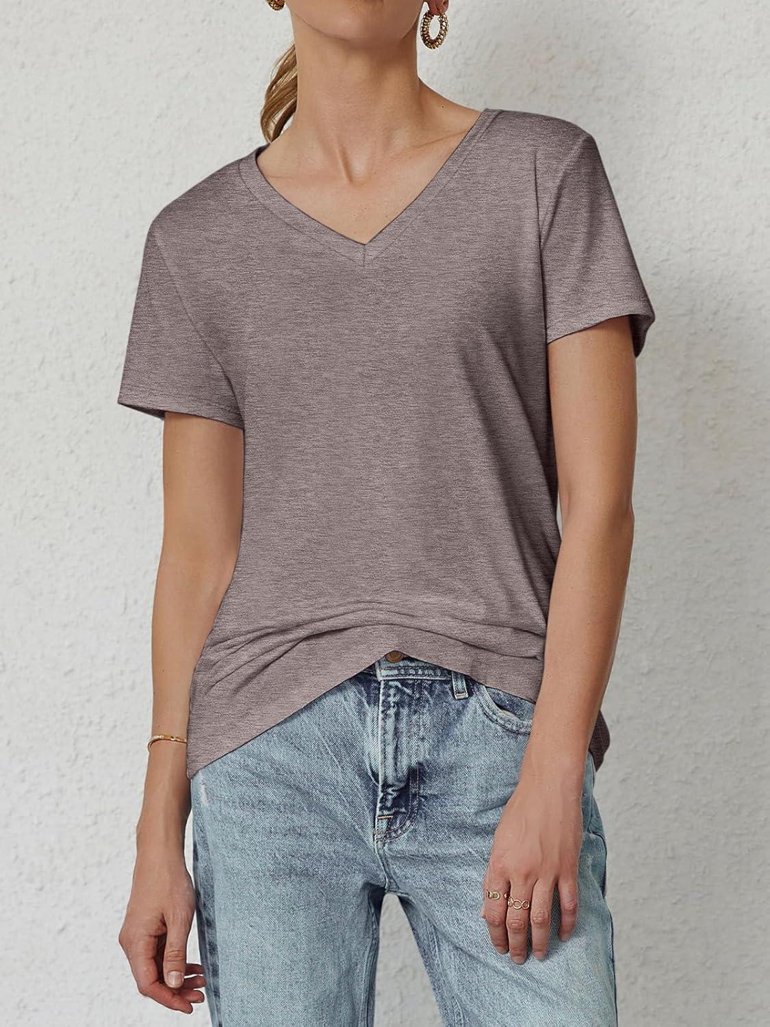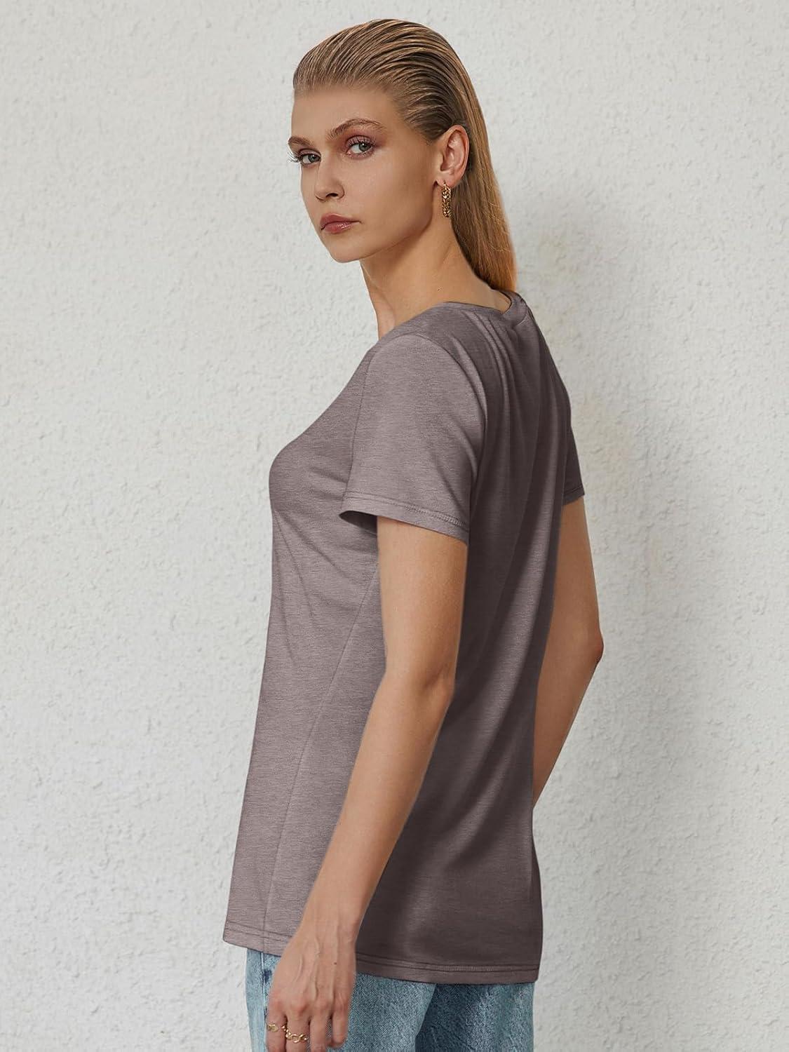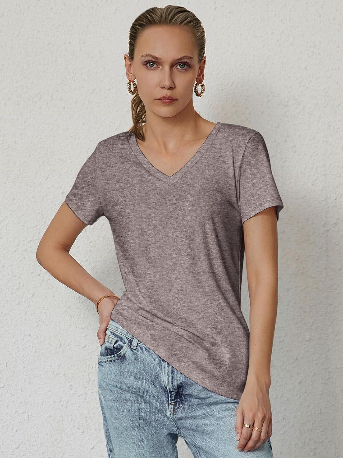 ATHMILE Womens Tops Shirts for Women Short Sleeve V Neck Tee Summer Fashion Trendy Soft Casual Spring Clothes Outfits Beach(Gray Purple)