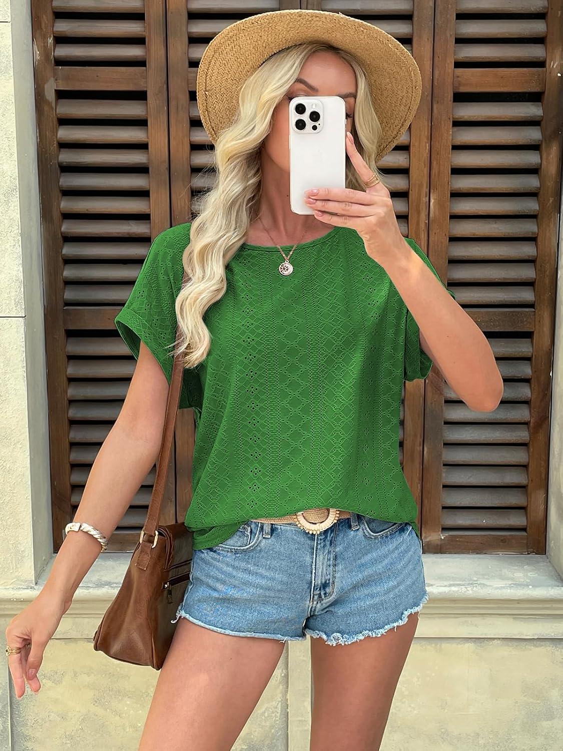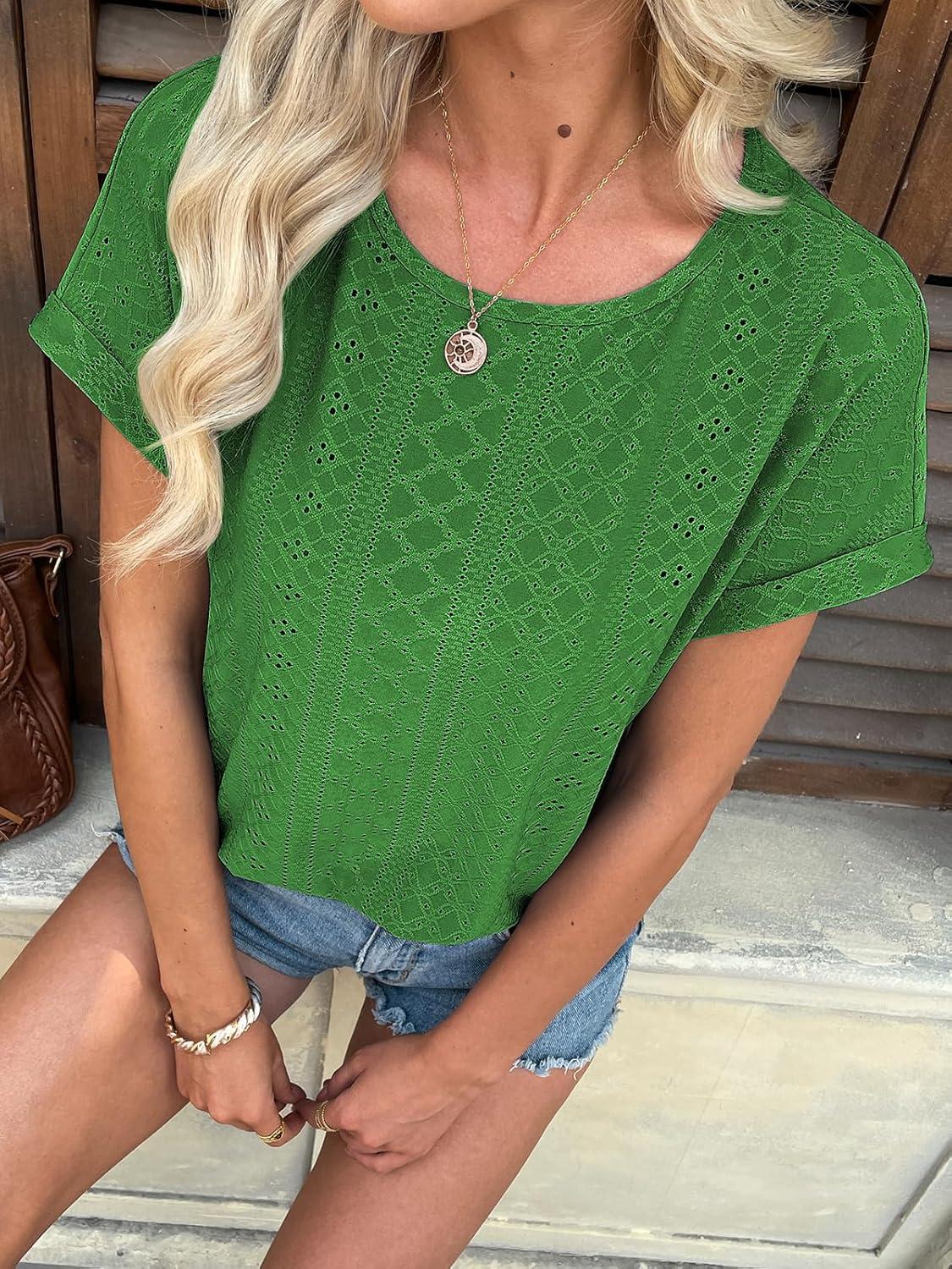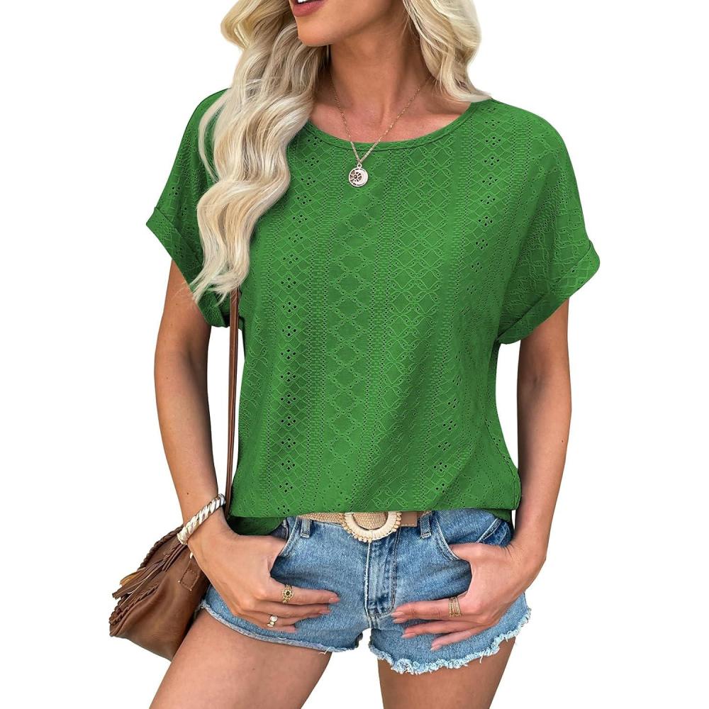 ATHMILE Women's Tunics Loose Fit Dressy Blouses Summer Short Sleeve Tops with Curved Hem Beach Vacation Clothes for Women(Green)