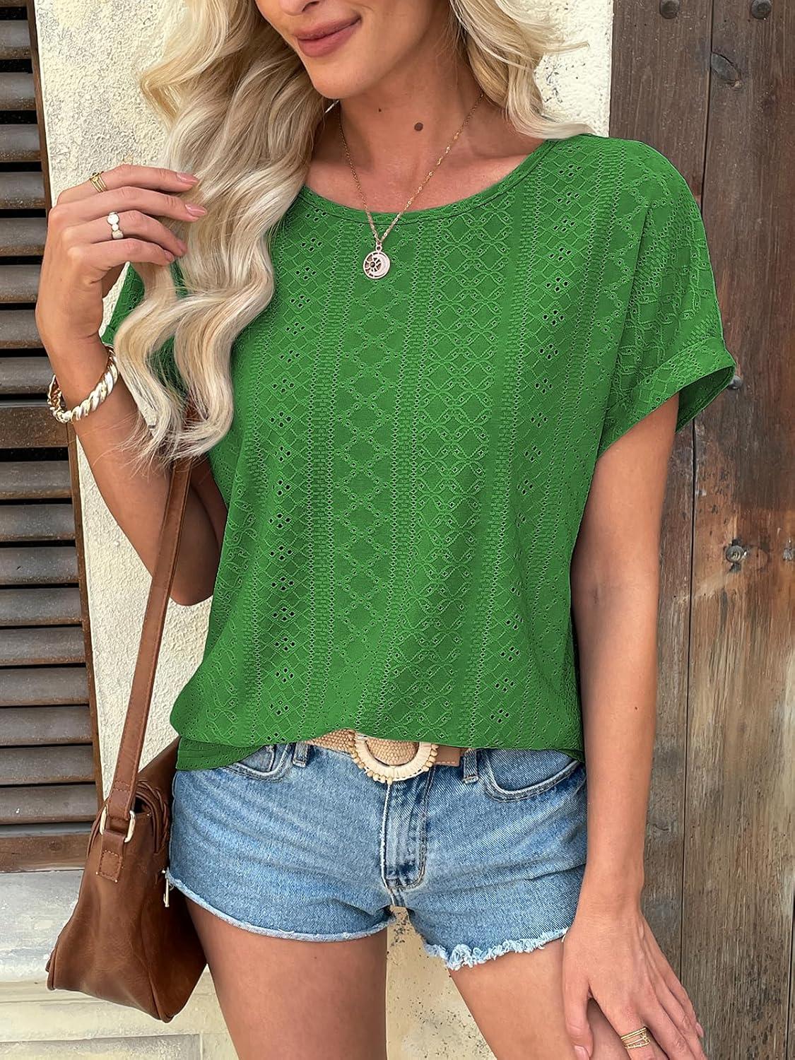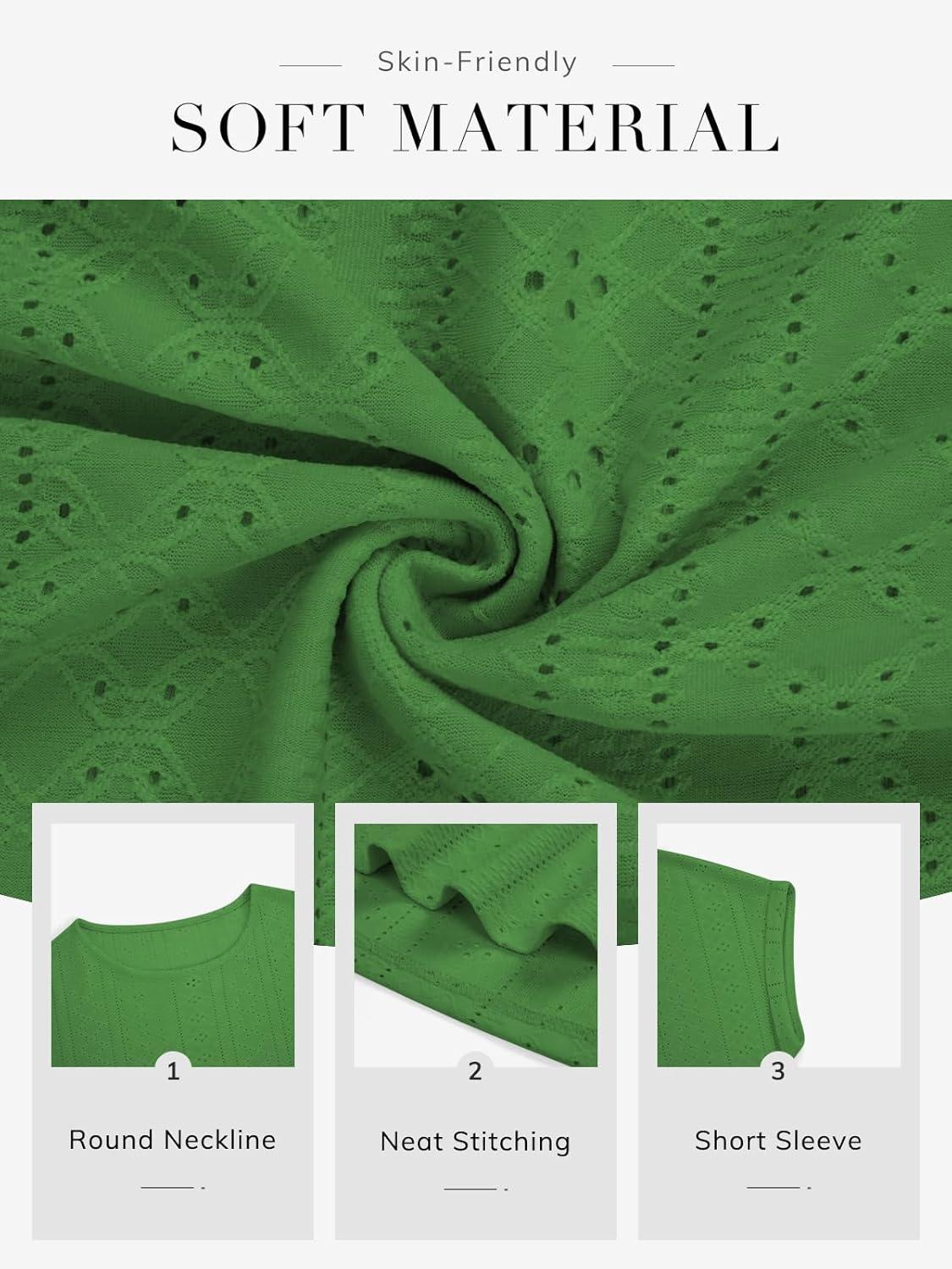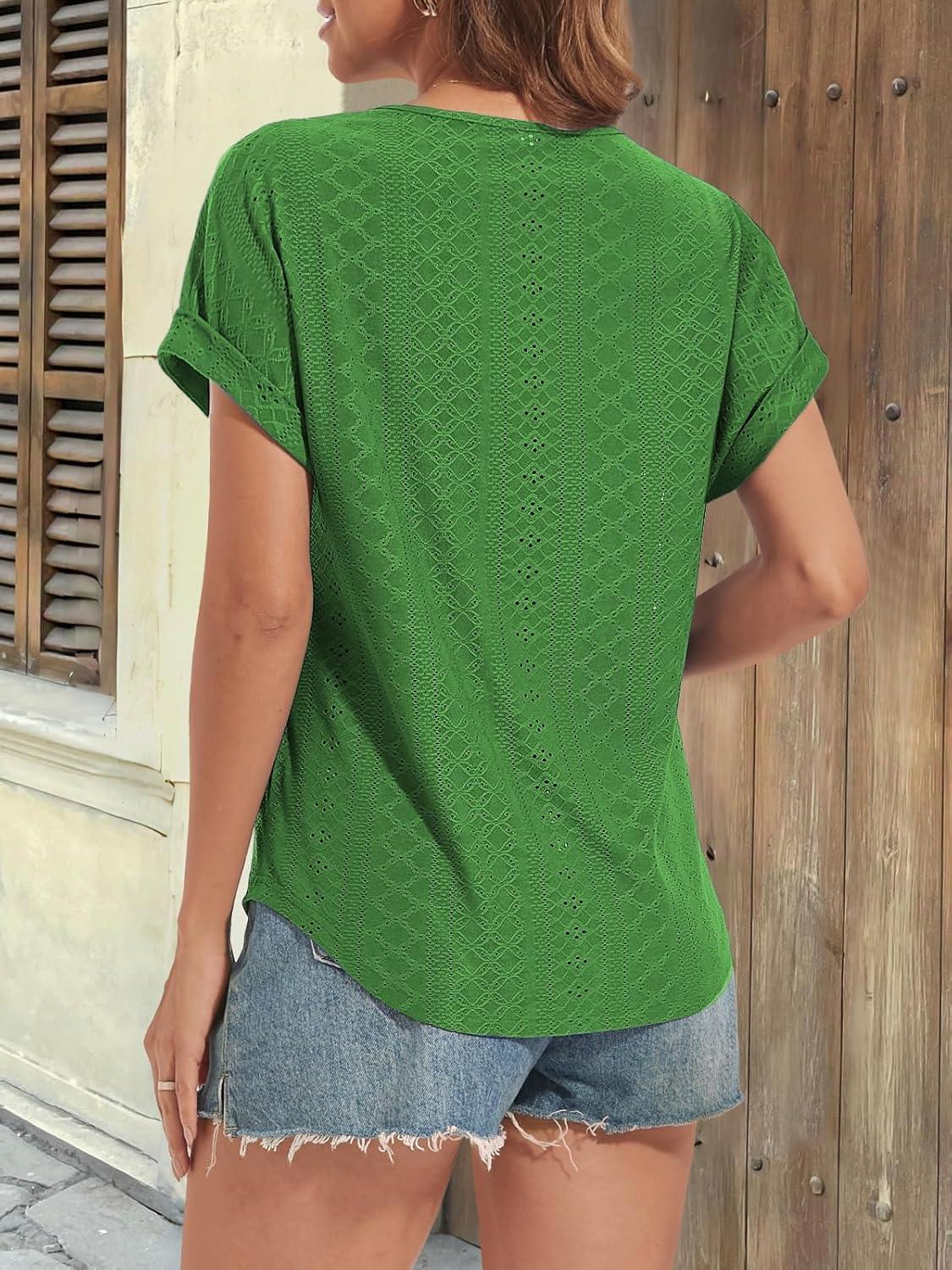 ATHMILE Women's Tunics Loose Fit Dressy Blouses Summer Short Sleeve Tops with Curved Hem Beach Vacation Clothes for Women(Green)