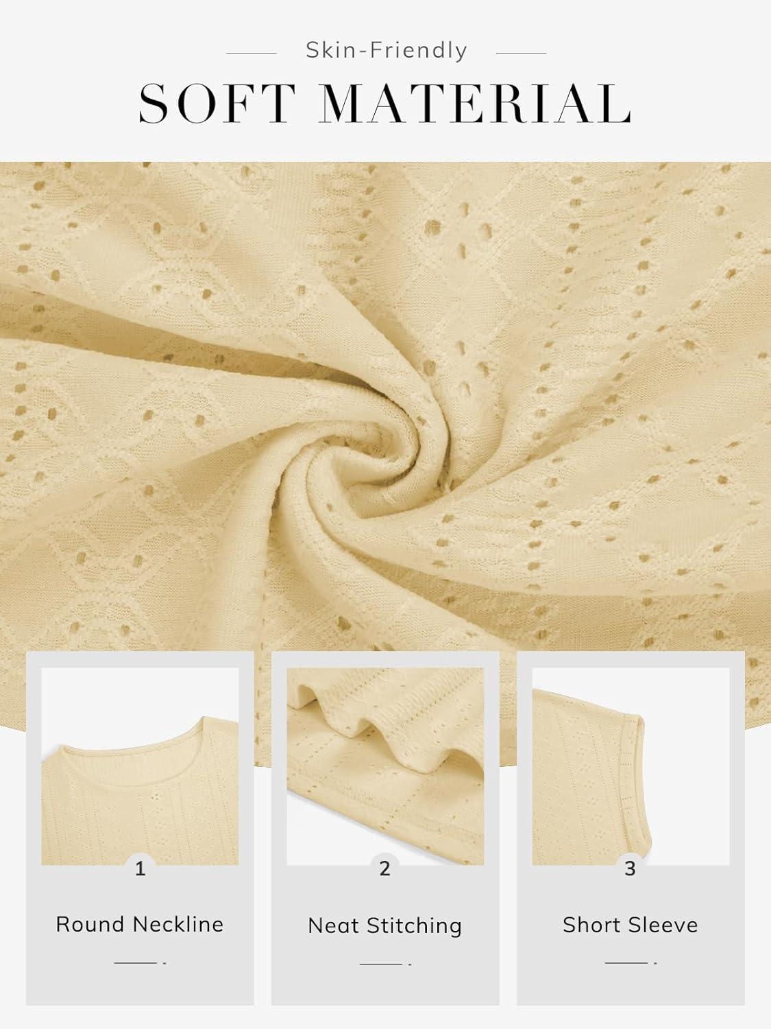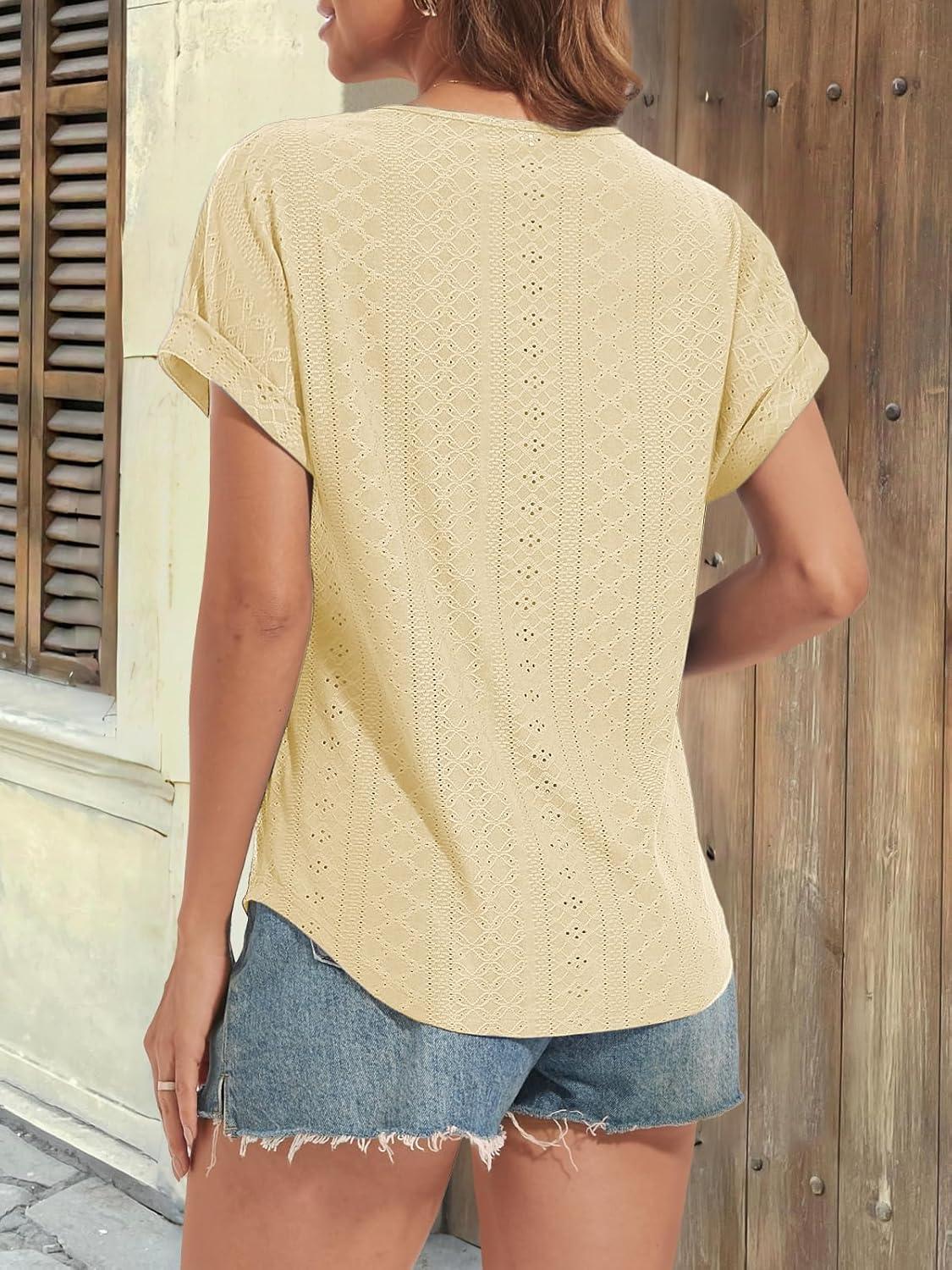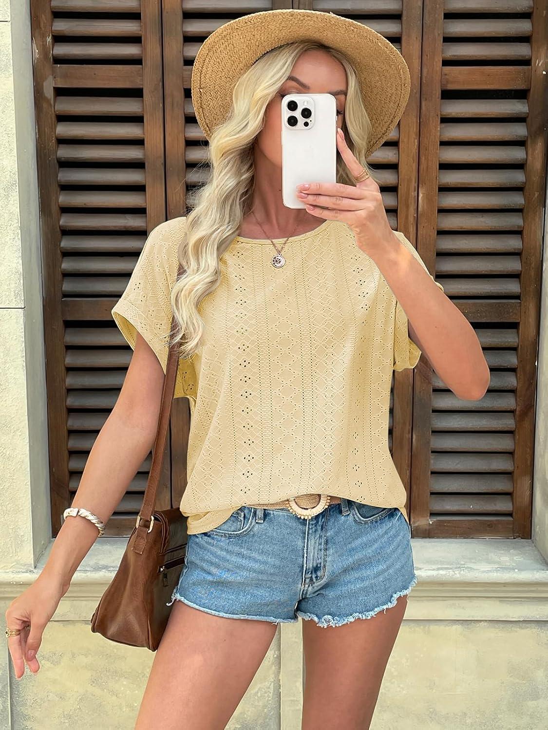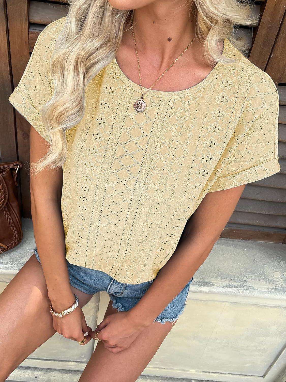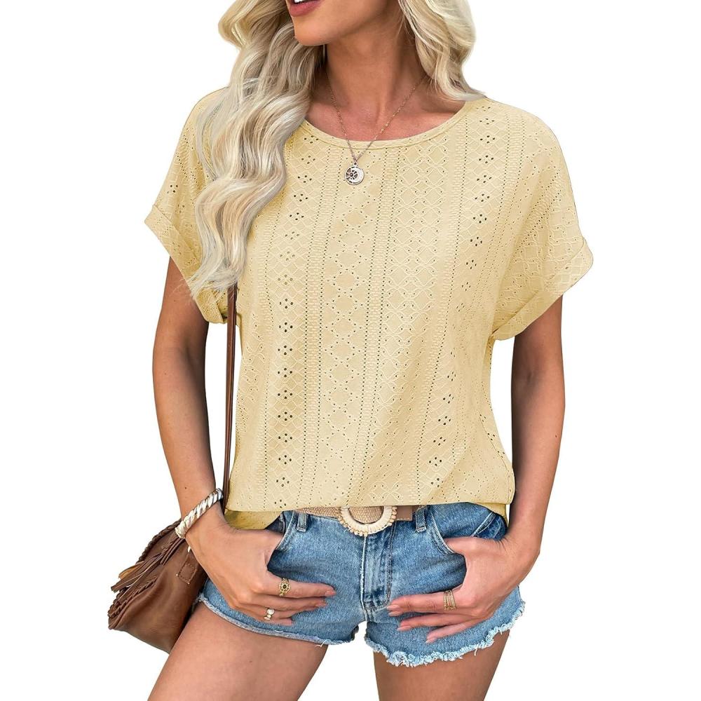 ATHMILE Women's Tunics Loose Fit Dressy Blouses Summer Short Sleeve Tops with Curved Hem Beach Vacation Clothes for Women(Yellow)