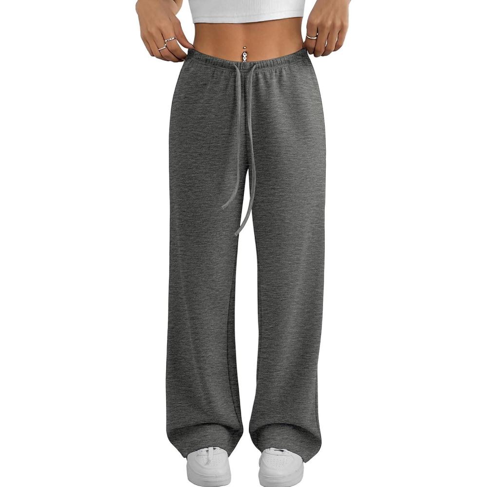 ATHMILE Womens Wide Leg Sweatpants Air Fabric Straight Lowrise Drawstring Elastic Low Waist Fall Clothing Pockets 2025(Grey)