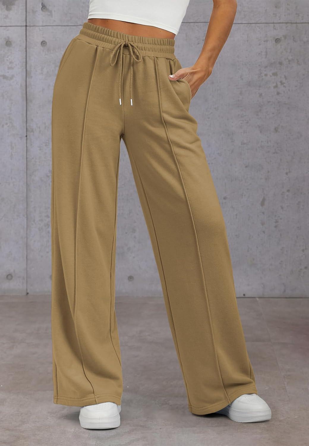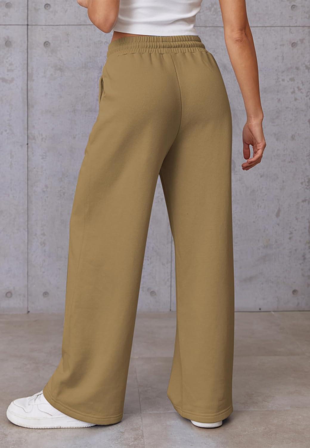 ATHMILE Womens Wide Leg Sweatpants High Waisted Baggy Pants Fashion Teen Girl Drawstring Athletic Joggers(Dark Khaki)