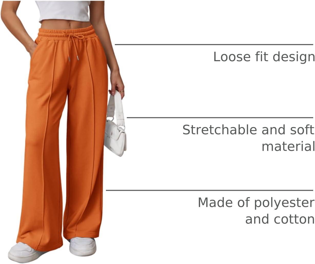 ATHMILE Womens Wide Leg Sweatpants High Waisted Baggy Pants Fashion Teen Girl Drawstring Athletic Joggers(Orange)
