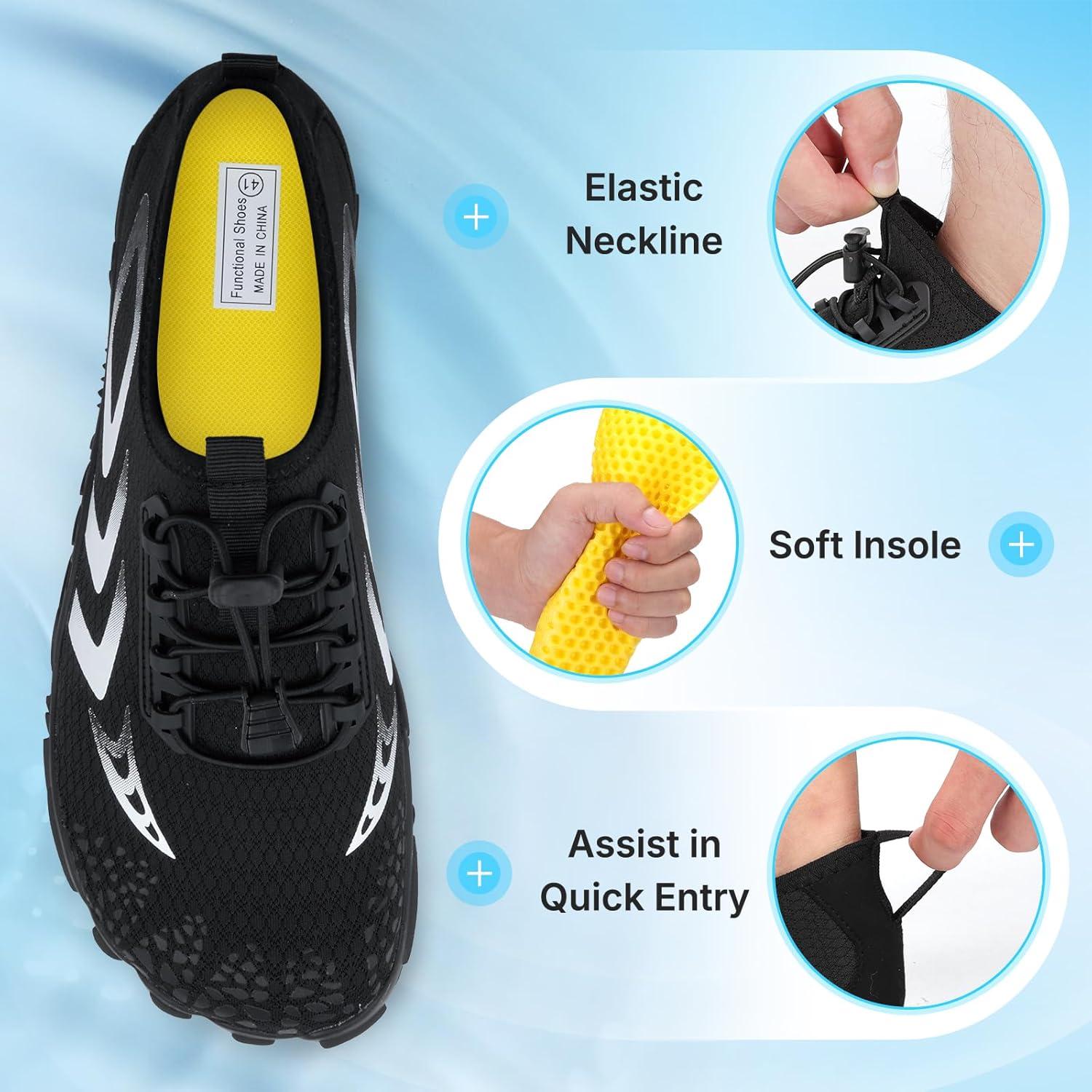 Barefoot Water Shoes Women Men Adult Hiking Swim Beach River Pool Hike Guarding Shoes Aqua Socks Protective Comfort Wide Toe Box Width Rock Climbing Vacation Outdoor 2025 New(Black-032)