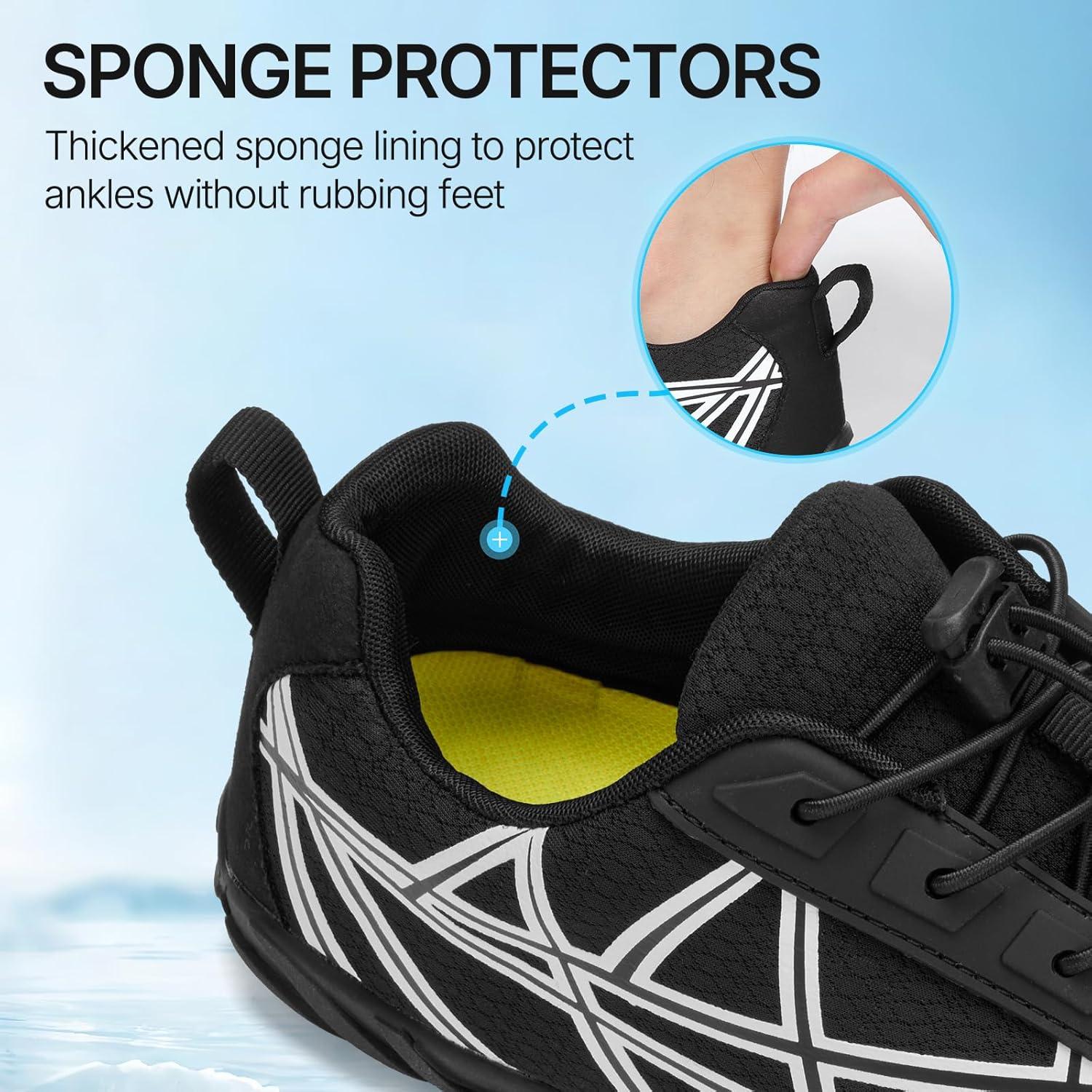 Barefoot Water Shoes Women Men Adult Hiking Swim Beach River Pool Hike Guarding Shoes Aqua Socks Protective Comfort Wide Toe Box Width Rock Climbing Vacation Outdoor 2025 New(White Black-023)