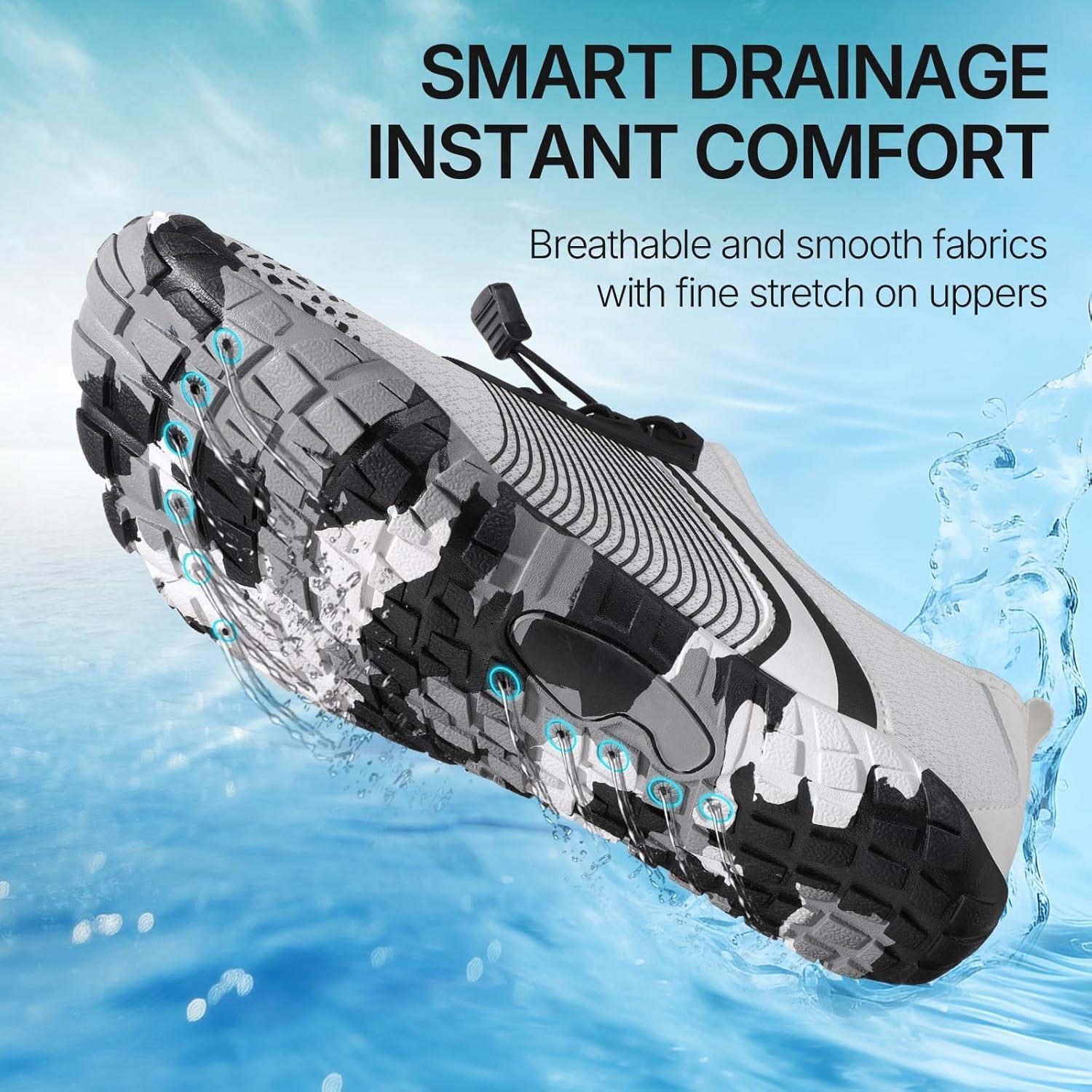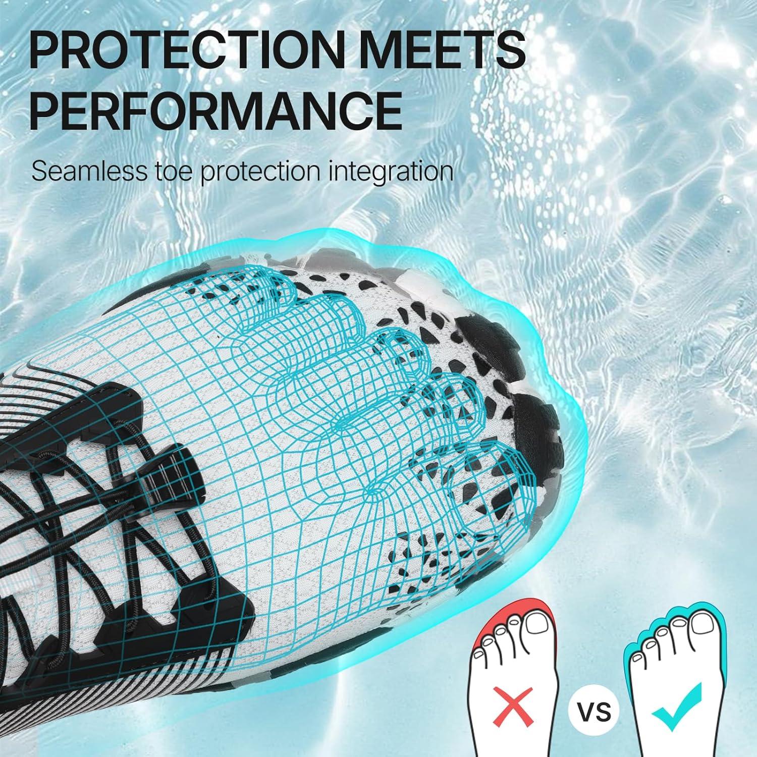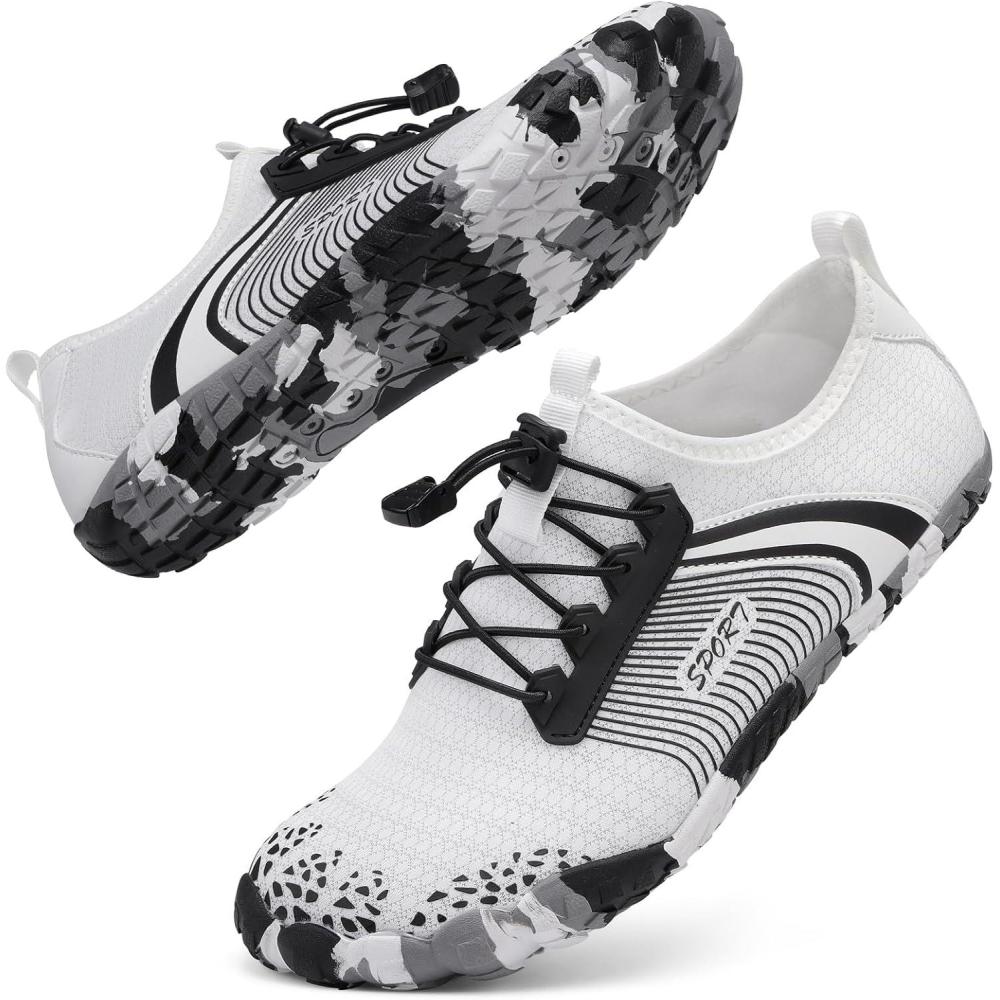 Barefoot Water Shoes Women Men Adult Hiking Swim Beach River Pool Hike Guarding Shoes Aqua Socks Protective Comfort Wide Toe Box Width Rock Climbing Vacation Outdoor 2025 New(White Black-020)