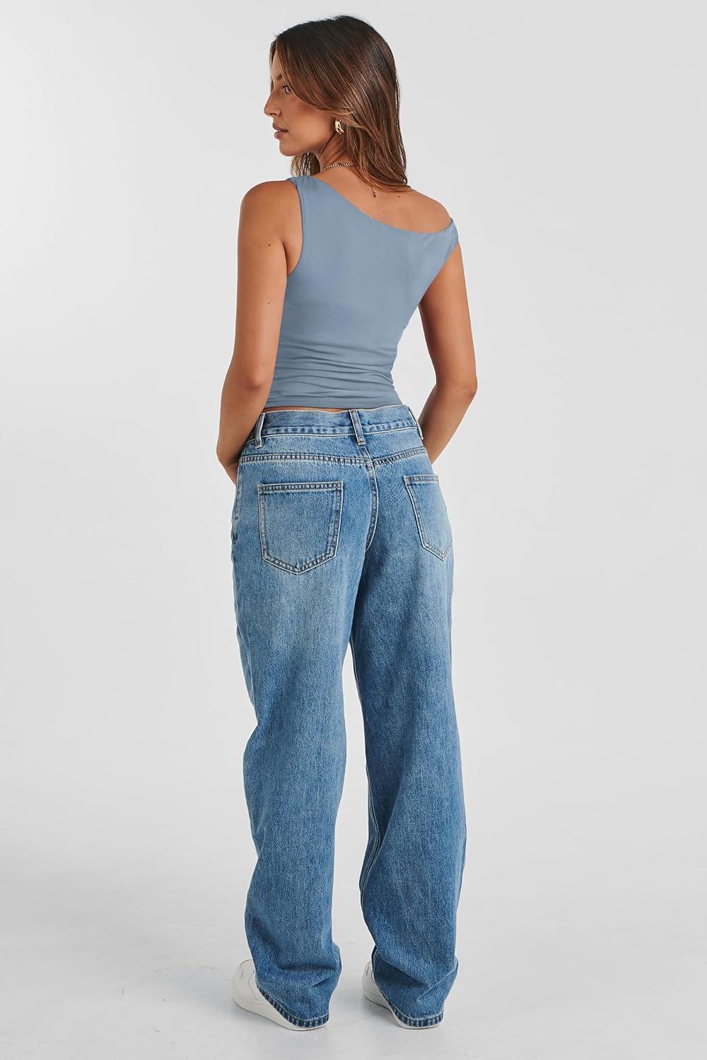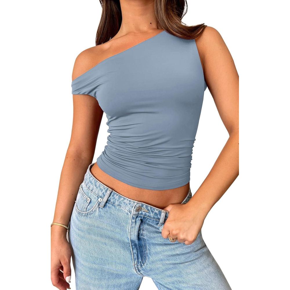Womens Off The Shoulder Tops Summer Shirts Going Out Crop Tank Top Y2K T Corset Tube Cute Fashion(Blue)