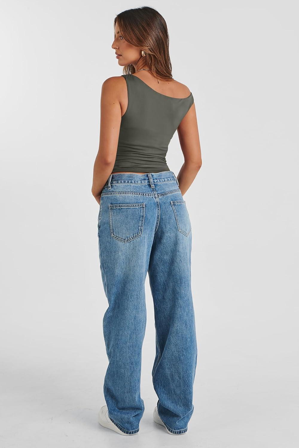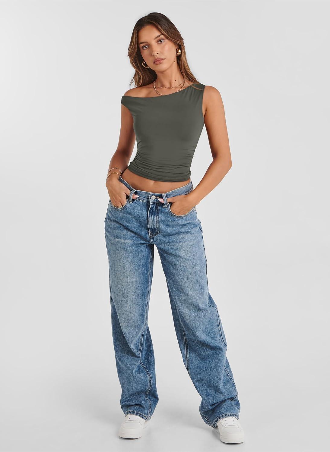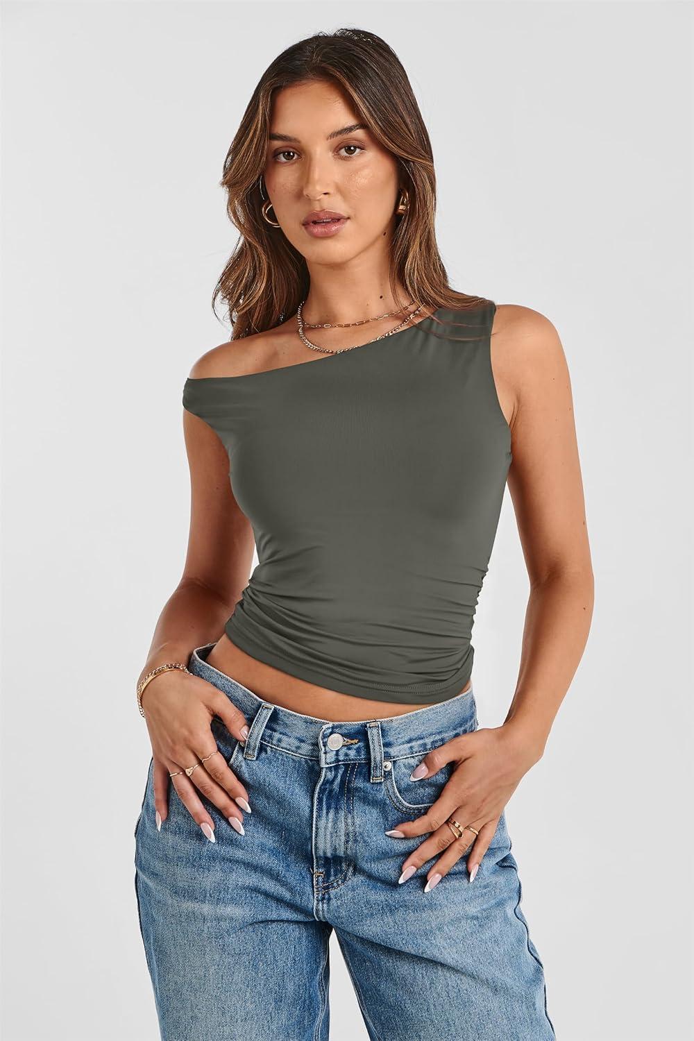 Womens Off The Shoulder Tops Summer Shirts Going Out Crop Tank Top Y2K T Corset Tube Cute Fashion(Grey)
