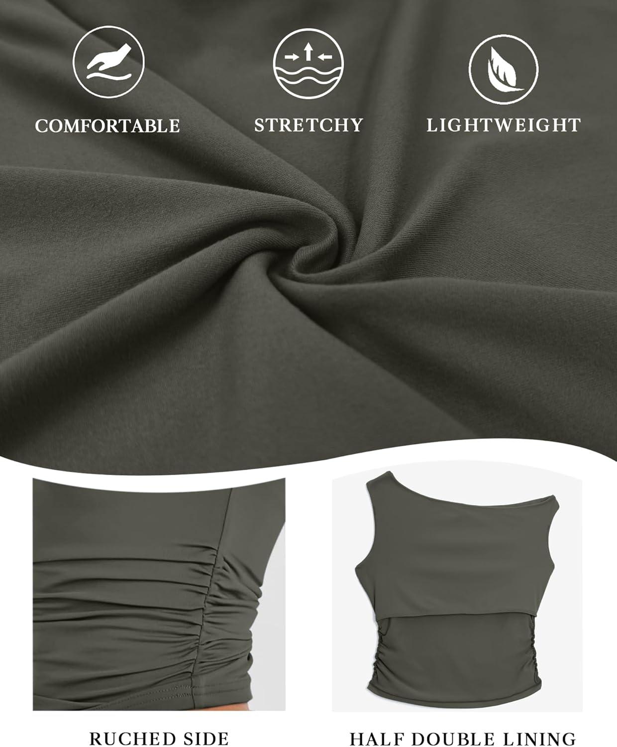 ATHMILE Womens Double Lined Crop Tank Tops Casual Basic Shirts Sleeveless Workout Tops Cute Summer Clothes Teen Girls(Olive Green)