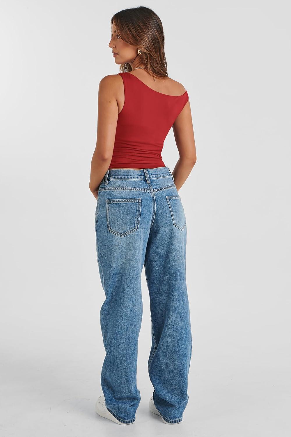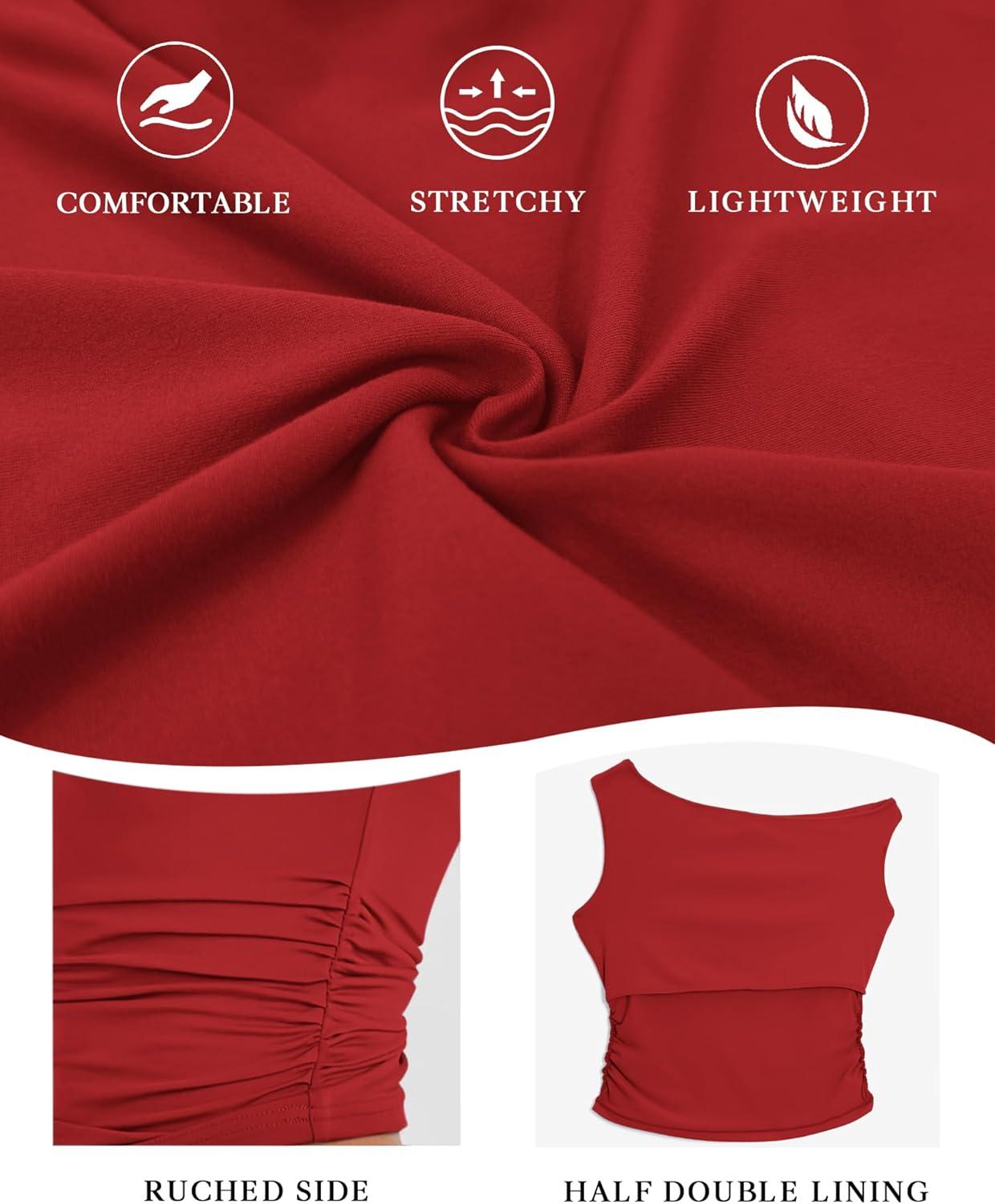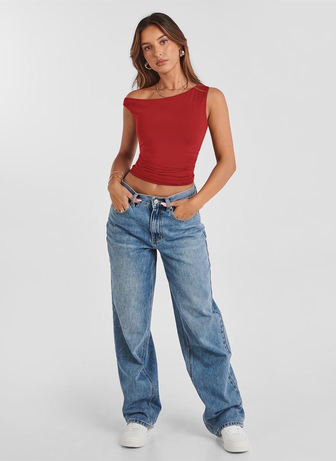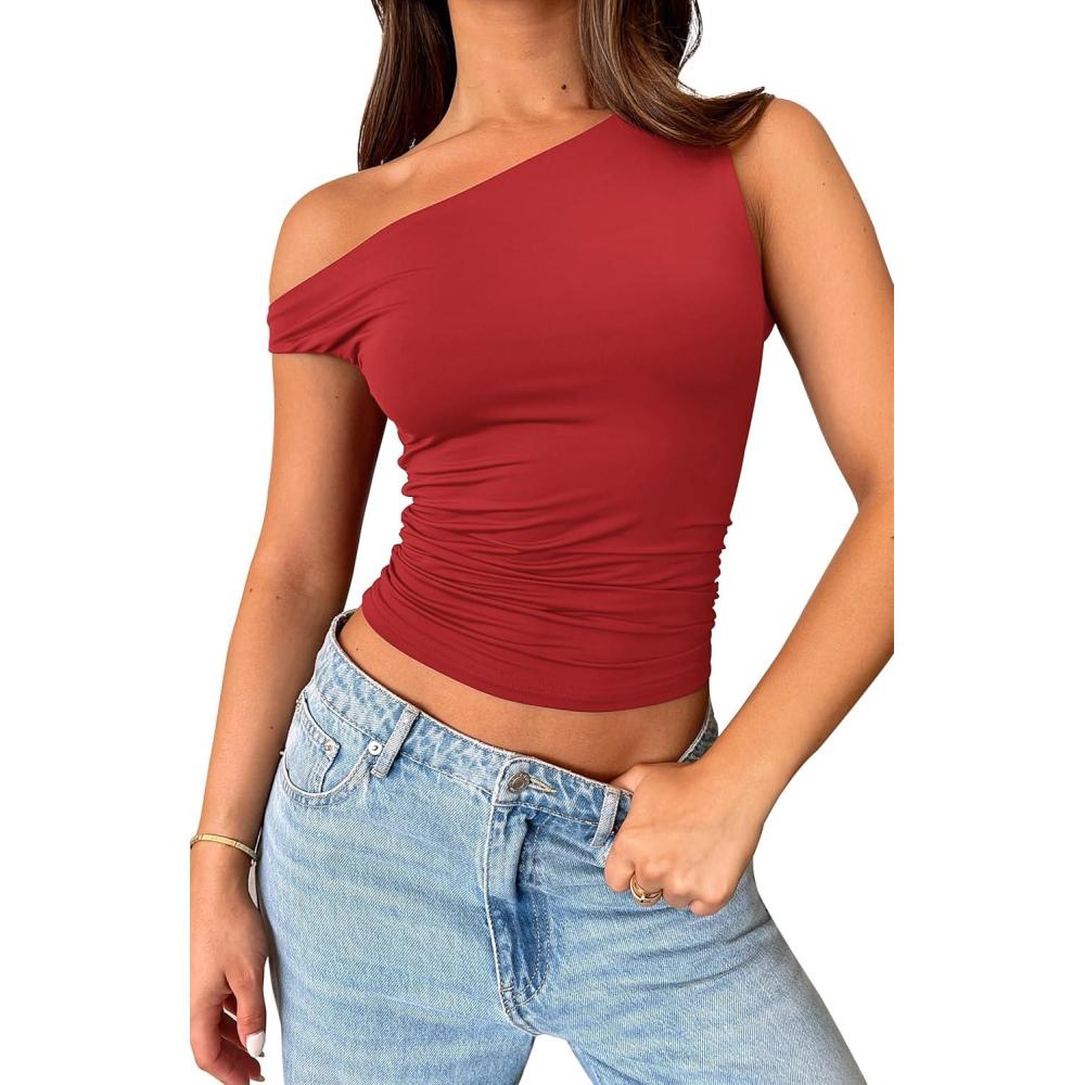 Womens Off The Shoulder Tops Summer Shirts Going Out Crop Tank Top Y2K T Corset Tube Cute Fashion(Red)